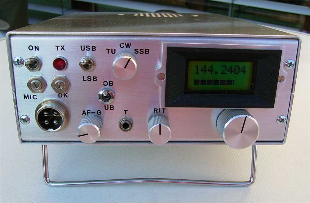 Der Zähler sollte in einem geschirmten Gehäuse untergebracht werden. Dazu schreibt DF5SL: "Als ich meine erste Zählerplatine fertig hatte und sie provisorisch an den VCXO angeschlossen hatte war die Freude gross, als nach einer genauen Justierung des 10MHz Quarzes am PIC sofort die richtige Frequenz angezeigt wurde. In dieser Begeisterung habe ich gleich an meiner Hohentwiel-Frontplatte mit der Laubsäge einen Ausbruch für das Display ausgesägt, was bei der bereits verdrahteten Frontplatte nicht einfach war. Umso grösser war dann der Schreck und die Enttäuschung, als es nach dem Einschalten aus dem Lautsprecher im Rhythmus der Zählertorzeit laut piepste. Dummerweise ist bei meiner derzeitigen Anordnung der Module der empfindliche ZF-Verstärkereingang unmittelbar hinter dem Zähler. Nachdem ich dann das ZF-Zuführungskoaxkabel anders verlegt hatte und noch ein kleines Abschirmblech hinter dem Zähler angebracht habe, war der Spuk vorbei. Im Moment ist das PIC-IC auch noch nicht eingelötet, sondern steckt in einem IC-Sockel, was die Störstrahlung natürlich noch erhöht. Nachdem der Zähler in ein Weissblechgehäuße 74 x 37 mm eingebaut wurde, gab es keinerlei Probleme mehr."